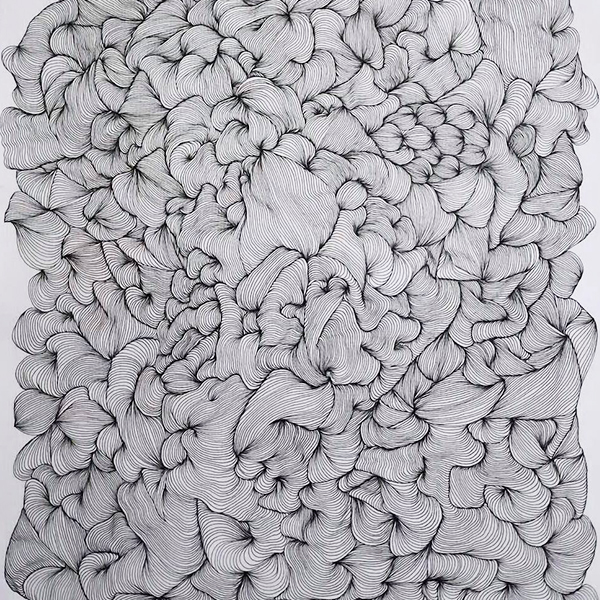 線を引いて、点を打つ。ただただ単純な作業の反復によって、何もない紙の上に模様ができていく。
